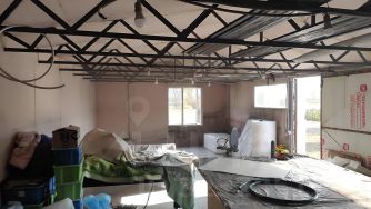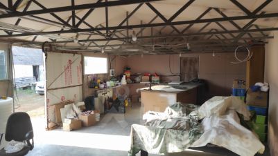 На участке имеется постройки: сарай (старого образца), погреб, мастерская - гараж (с отоплением). На участке удобный въезд во двор как для нескольких авто, так и для техники (газовая труба идёт под землёй).