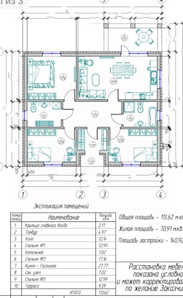Плoщaдь домa 114 кв. м., террасы - 9,4 кв.м.