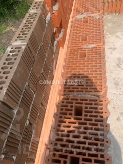 Материал стен - керамоблок ( что является неоспоримым преимуществом перед аналогами ) + утеплитель и облицовка - кирпич. Есть фото на всех этапах строительства!
