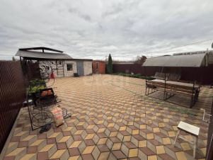 - Площадь участка составляет целых 7,5 соток, окружённых аккуратным забором. Перед домом расположен комфортный навес для автомобиля, внутренний двор покрыт качественной плиткой. Во дворе расположено кирпичное строение, предназначенное для хозяйственных нужд.