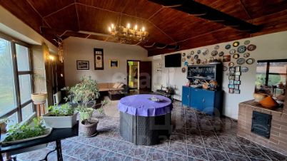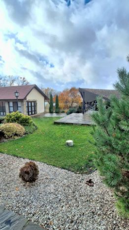 Второй дом на участке - Гостевой 40 кв.м., состоит из кухни, котельной, санузла, и просторного помещения для приёма гостей с мангальной зоной и печкой из камня, зоной для отдыха, панорамными окнами и дополнительным выходом во двор и к беседке.