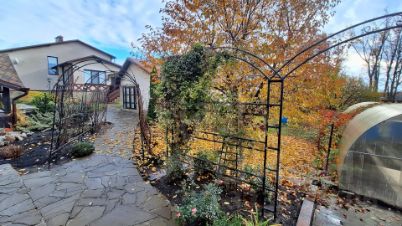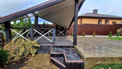 На участке установлена красивая беседка с готовой площадкой под бассейн, по всей территории выполнен ландшафтный дизайн с большим количеством декоративных растений и газоном с автополивом.