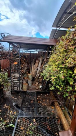 Есть зона для барбекю с дровницей.