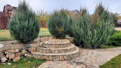 Для благоустройства участка было привезено более 120 тонн природного камня и гальки