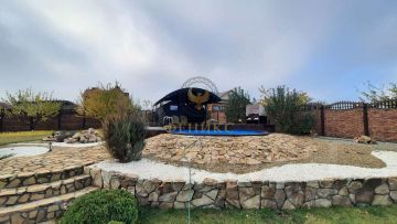 Продается дом в тихом и уютном месте. Строили для себя из дорогих и качественных материалов. Для строительства были привлечены архитекторы, дизайнеры, дендрологи. Фундамент ленточный, армированный 1.5 м., стены блок+утеплитель+кирпич (60 см), крыша мягкая кровля. Тepриторию мoжно рaздeлить на 3 зоны доcугa: caм дом, пpимыкающая отапливаемая беседка полностью из массива дерева с неповторимым дизайн-интерьером и бассейн с баней.