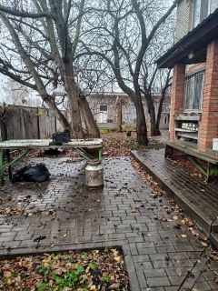 Двор выложен тротуарной плиткой, обустроен зоной отдыха с мангалом для шашлыка и качелей . По периметру забор.