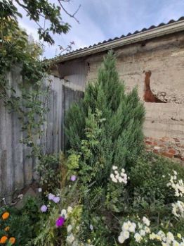 На участке имеется гараж, что добавляет удобства для автолюбителей. Облицовка здания выполнена штукатуркой, а крыша покрыта шифером .