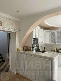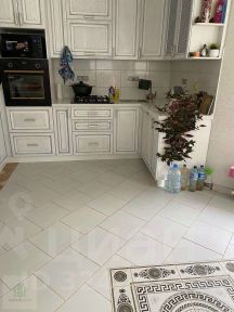 На 1 этаже просторная гостиная (18,3 кв.м), кухня (13,5 кв.м), санузел. Встроенная кухня с техникой (духовой шкаф Bosch, посудомоечная машина), столешницей из искусственного камня и барная стойка.
