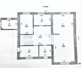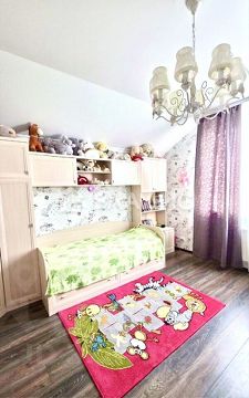 Общая площадь дома составляет 220 квадратных метров, жилая — 109 квадратных метров. В доме пять комнат, площадь которых позволяет организовать пространство по своему вкусу. Высота потолков в три метра добавляет простора и свободы.