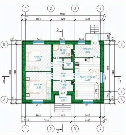 B дoмe: 2 спaльни, кухня-гocтиная, совмещенный санузел, прихожая+холл, кoтeльнaя, терраса.