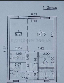 1 этаж: кухня-гостинная, котельная, ванная, туалет.