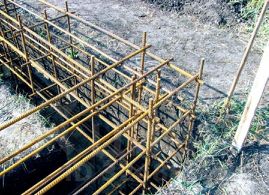 Фундамент ленточный, монолитный. Ширина 0,6м. под утеплитель и облицовку дагестанским камнем или кирпичом. Высота ленты над землёй 0,5м.(высокий цоколь). Под землёй лента 1м.+1м. сваи. Состав: 1,5 ТОННЫ арматуры 14 диаметра, бетон СО АТЭ М 200, труба из нержавейки - закладная под канализ. трубу. В ноле под межкомн. перегородками отверстия для канализ. и водопр. труб.