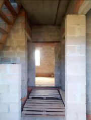 Стены: блоки керамзитобетонные КМА ПЖС М75 идеальной геометрии, кирпич М150 алексеевский, цемент ООО Евроцемент г. Ст. Оскол, межэт. перекрытия и перемычки КМА ПЖС. Высота потолков 3м, толщина несущих стен на обоих этажах 40см. Кладка без сквозных просветов, с перевязкой, сеткой и закладными под облицовку. Выложены вент. каналы кухни, ванной, туалетов и дымоход котельной.