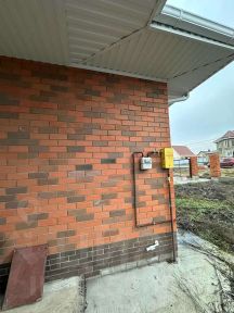 - Стены выполнены из газосиликатного блока 300 мм, облицованы кирпичом "баварская кладка"