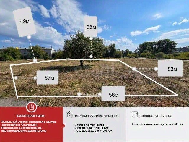 Земельный участок площадью 5484 кв. м расположен в микрорайоне Соцгород города Валуйки, занимая центральное положение с высоким трафиком пешеходов и транспорта. Его ключевое преимущество — универсальное разрешенное использование: территория предназначена для размещения производственных и административных зданий, что открывает возможности для строительства торгового центра, офисного комплекса, предприятия с административным блоком или объекта развлечений.