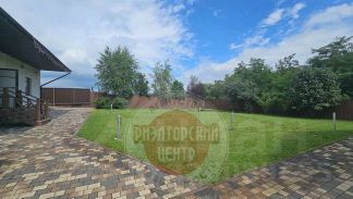 Во дворе выполнено благоустройство, газон с системой полива, высажены декоративные и плодовые деревья.