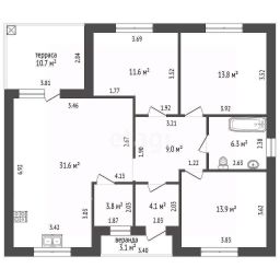 Здание построено из энергоэффективного материала — газоблока(Аэробел), дополнительно облицованного кирпичом с использованием баварской кладки, что обеспечивает не только эстетичный внешний вид, но и высокие теплоизоляционные свойства. Планировка дома продумана для комфортного проживания: три спальни, просторная кухня-гостиная, два санузла и терраса площадью 15 кв. м, позволяющая наслаждаться отдыхом на свежем воздухе. По всему дому проложена система теплого пола, что гарантирует равномерный обогрев и повышенный уровень комфорта в холодное время года.