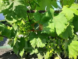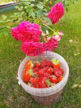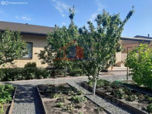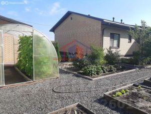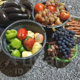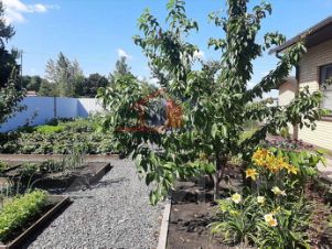 Участок ровный с плодоносящими деревьями и кустарниками, высокие грядки, теплица.