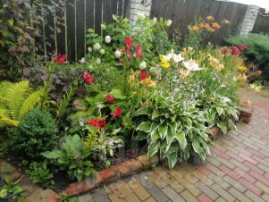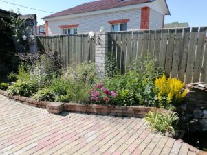 * цветники с подпорными стенками и живыми изгородями;