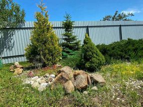 Первый этаж площадью 70,2 м.кв. - просторная гостиная , совмещенная с кухней, спальная комната, санузел, гардеробная, большой подвал, выход в зону отдыха под большим навесом, где расположен гостевой домик.