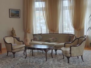 Продаем особняк в г. Белгороде общей площадью 580м2 с прилегающей территорией 0,8 га. Располагается престижном районе города. На территории расположены основной дом, гостевой дом с бассейном, летняя кухня - в общей сложности 1100 м2. План дома таков: на цокольном этаже расположены спортивный зал, котельная, сан узел с душевой кабиной, два кладовых помещения, постирочная, имеется отдельный выход на улицу для хозяйственных нужд. На 1-м этаже находится гараж на 2 машины с выходом из дома, гардеробная, гостиная, кухня-столовая, закрытая веранда, сан узел, ванная комната, помещение для проживания помощницы по хозяйству со своей кухней, спальной комнатой и сан.узлом с ванной. На 2-м этаже расположены три спальни, шикарная теплая лоджия, две ванные комнаты с сан узлами, встроенная мини-кухня, комната отдыха, гардеробная комната. На 3-м этаже находятся две комнаты (можно использовать как спальни), рабочий кабинет, кладовка. В коттедже выполнен авторский ремонт с применением высококачественных отделочных материалов. В доме теплые полы. В интерьере дома используются эксклюзивные дизайнерские детали. Мебель, текстиль европейских производителей. На участке находится двухэтажный гостевой дом из оцелиндрованного бревна. На первом этаже кухня-гостиная, с/у, на втором этаже две комнаты, кладовка. К дому примыкает бассейн, сауна. На участке свой пруд, декорированный различными растениями, беседка с камином, летняя кухня. Также на участке находятся дополнительные вспомогательные помещения. На участке выполнен ландшафтный дизайн, за которым ведется профессиональный уход.