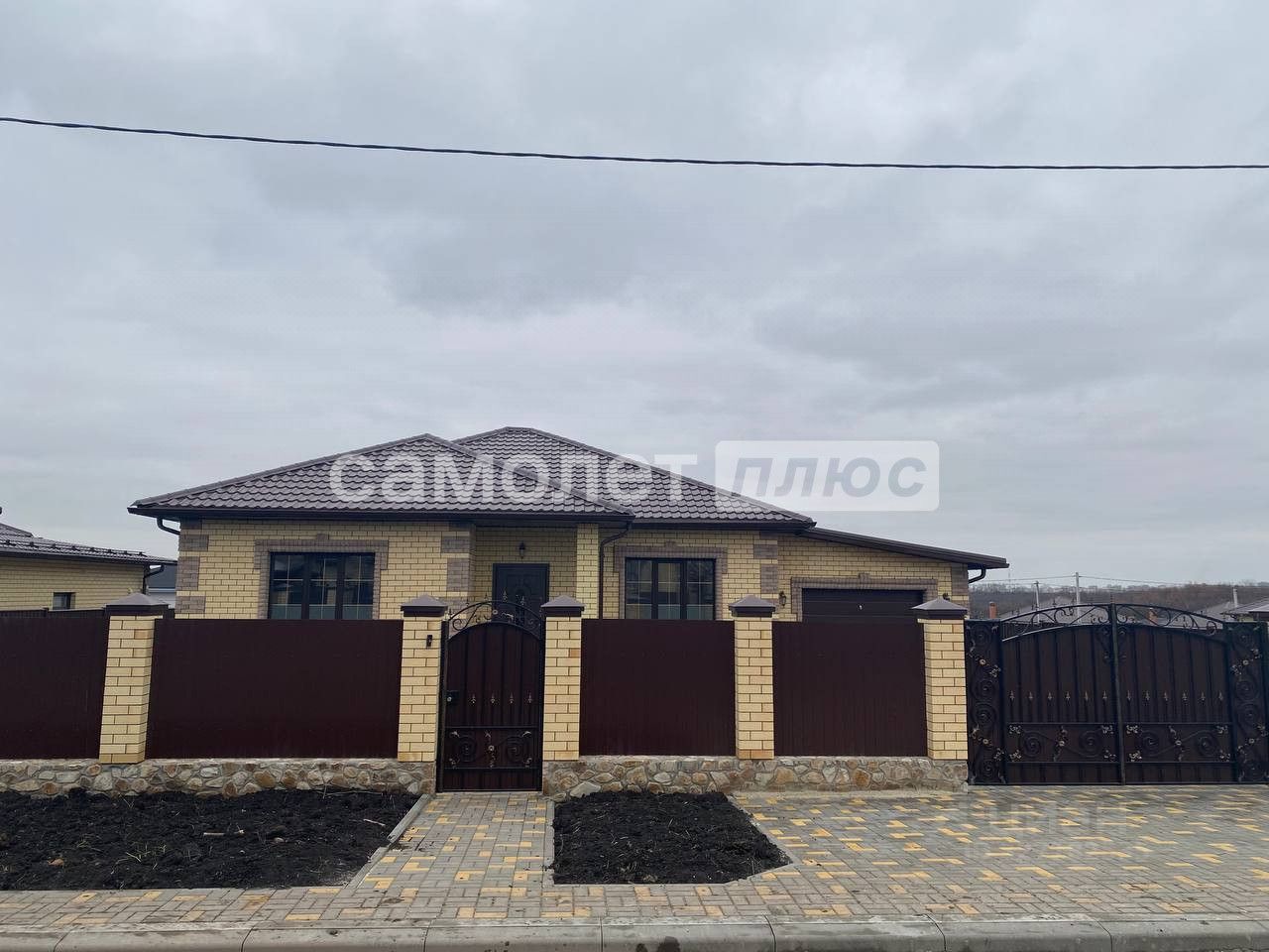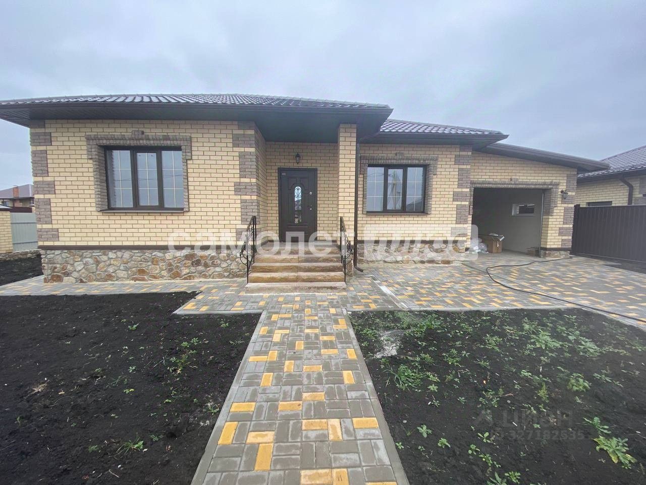 ДОМ от юр. лица, под ключ с благоустройством территории. Участок ровный 8 соток. Планировка: прихожая - коридор, просторная кухня - гостиная с выходом на террасу, три изолированные спальные комнаты, 2 сан узла, гараж.