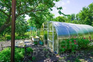 Земельный участок площадью 11.4 сотки, ровный, ухоженный сад и овощные грядки. На участке большой навес, гараж, жилая времянка, много хозяйственных построек и сухой подвал.