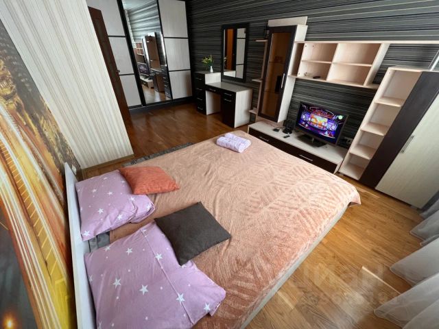 Заселение круглосуточно, в любое время. Время выезда 12:00 час., возможно позже или раньше по договорённости. До центра города 4 остановки или 30 минут пешком. До остановки Салют 5 минут пешком, до ж/д вокзала 10 минут пешком. Район Савино. В 10 км. от Харгоры, не обстреливается все 4 года. Двор без шлагбаума, въезд свободный, стоянка бесплатная. Все три комнаты изолированные. Дом из монолитного бетона, стены 80 см., на сваях, сейсмоустойчивый (сделан по Алматинскому проекту), выдерживает прямое попадание снаряда любого калибра, тёплый. Дом прикрыт со стороны Харгоры двумя монолитными домами аналогичного проекта. Горячая вода круглый год, два электрических бойлера, в ванной на 100 литров. Электричество подаётся без перебоев, в доме стоит свой дизельный генератор (см. последнее фото), вода без перебоев работают свои насосы. Новые пластиковые окна, на окнах скрытые замки (безопасность для детей). Рулонные шторы на всех окнах, блэкаут (полное затемнее) . Свежий ремонт. Бытовая техника: телевизор Smart TV, холодильник двухкамерный, кухонная стенка, микроволновка, стиральная машина автомат, электроплита, два фена. Диван двухспальный (разбирается на две полноценные односпалки), диван двухспальный, диван-кровать, кровать односпальная, деревянная раскладушка, ещё два матраса по 190 см. Всего 5 полноценных спальных места, если на двухспальных диваннах спать вдвоём, то 8 спальных мест, с матрасами 10 спальных мест. Шкаф-купе зеркальный (230 см. на 380 см. с тремя отделениями), шкаф для одежды, шкаф для белья с комодом, шкаф для книг и документов с подставкой для телевизора и тумбой, компьютерный стол с тумбочкой, 4 стула, 3 табуретки, обеденный стол стеклянный. Посуда, столовые приборы на 10 персон, блэндер в сборе, электрочайник. Газа нет, плита электрическая, отопление центральное. Есть масляный электрический обогреватель (при обогреве не сушит воздух). Второй обогреватель электрический с вентилятором. При обогреве обогревателями в квартире тепло. Балкон застекленный. Отопление не индивидуальное. Любые отчётные документы, работаем в том числе с Юр. лицами Сдаю 3-комнатную квартиру на сутки от собственника в Белгороде.