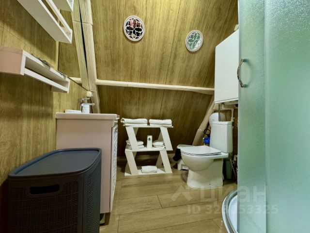 В ванной комнате: Душевая кабина с тропическим душем, гигиенический душ, фен, тапочки, полотенца и средства личной гигиены.